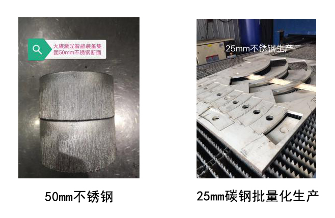 近幾年,激光切割的市場需求不斷加大,人們對于其加工能力的期待也越來越高,這種期待不僅僅是對能夠切,還必須保證切得好和切得快。針對25mm以上厚度的碳鋼板,為了獲得良好的切割效果,大族激光智能裝備集團以厚板穿孔、切割面質量及整板加工等關鍵技術難點作為主攻方向,隨著萬瓦級功率切割技術不斷成熟且越多的被用于實際金屬板材加工中,積累了豐富的應用經(jīng)驗,并逐漸掌握了厚板高品質切割工藝。當前25mm以上厚度碳鋼已實現(xiàn)批量穩(wěn)定生產(chǎn),25mm碳鋼切割速度達1.2m/min。