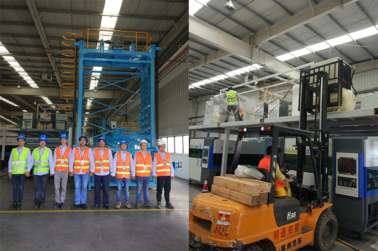 項(xiàng)目的安裝過(guò)程困難重重,由于客戶(hù)提供給研發(fā)的尺寸有誤,產(chǎn)線(xiàn)料庫(kù)立起以后料庫(kù)梯子被車(chē)間管道擋住無(wú)法上人,我方工程師決定要把梯子改造到別外一邊,重新配孔,切割梯子和料庫(kù)頂上護(hù)欄進(jìn)出口現(xiàn)場(chǎng)切割和焊接比較困難,又加上是高空作業(yè),導(dǎo)致整個(gè)安裝過(guò)程真是難上加難。我方項(xiàng)目負(fù)責(zé)工程師劉春華、何亮、李付清、趙爽、胡科、王曉烽、胡智明、宴嘉、張道慶在重重的困難面前,嚴(yán)格根據(jù)要求一絲不茍的完成安裝工作,用自己的專(zhuān)業(yè)技術(shù)解決了標(biāo)準(zhǔn)機(jī)防塵罩變徑接頭尺寸不對(duì)、產(chǎn)線(xiàn)護(hù)欄現(xiàn)場(chǎng)組裝等問(wèn)題。