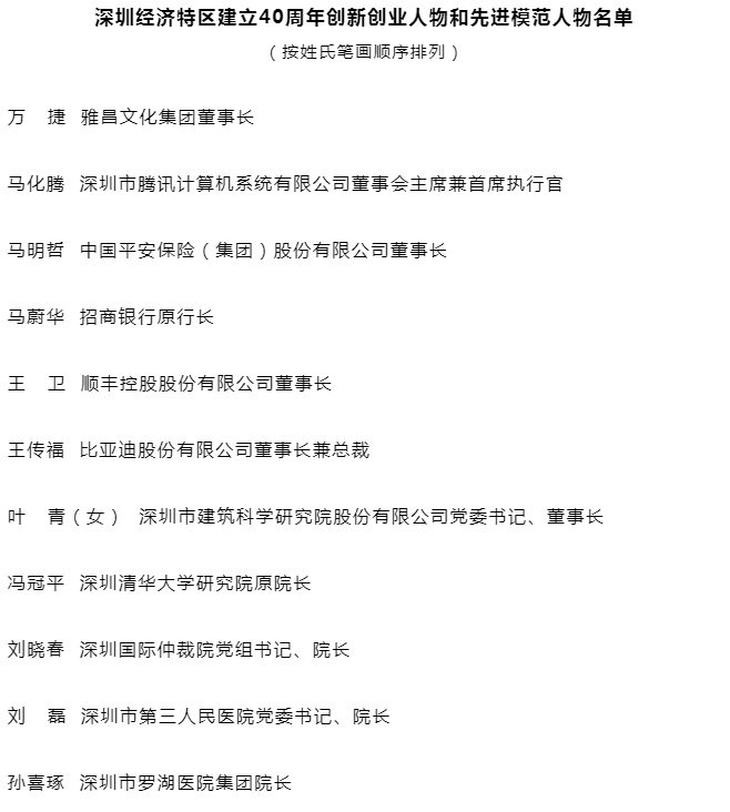 “深圳經濟特區建立40周年創新創業人物和先進模范人物”涵蓋了從特區建立之初的老特區人,到新時代各行各業的新特區人,體現了特區精神的傳承。40年,40人,看深圳發展,他們身上所體現的時代精神,是所有深圳人的驕傲,也是特區發展最生動的體現。