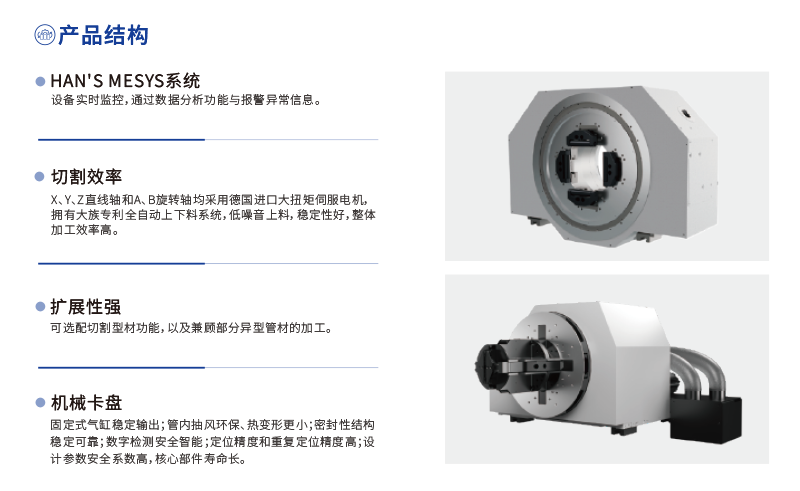 P系列高速切管機是大族激光智能裝備集團研制開發的高端專業激光切管機,該機床采用臥式結構,配備高精密齒輪齒條、高精度直線導軌等高效傳動機構,傳動平穩,配備全自動上、下料裝置,大大提高生產效率。