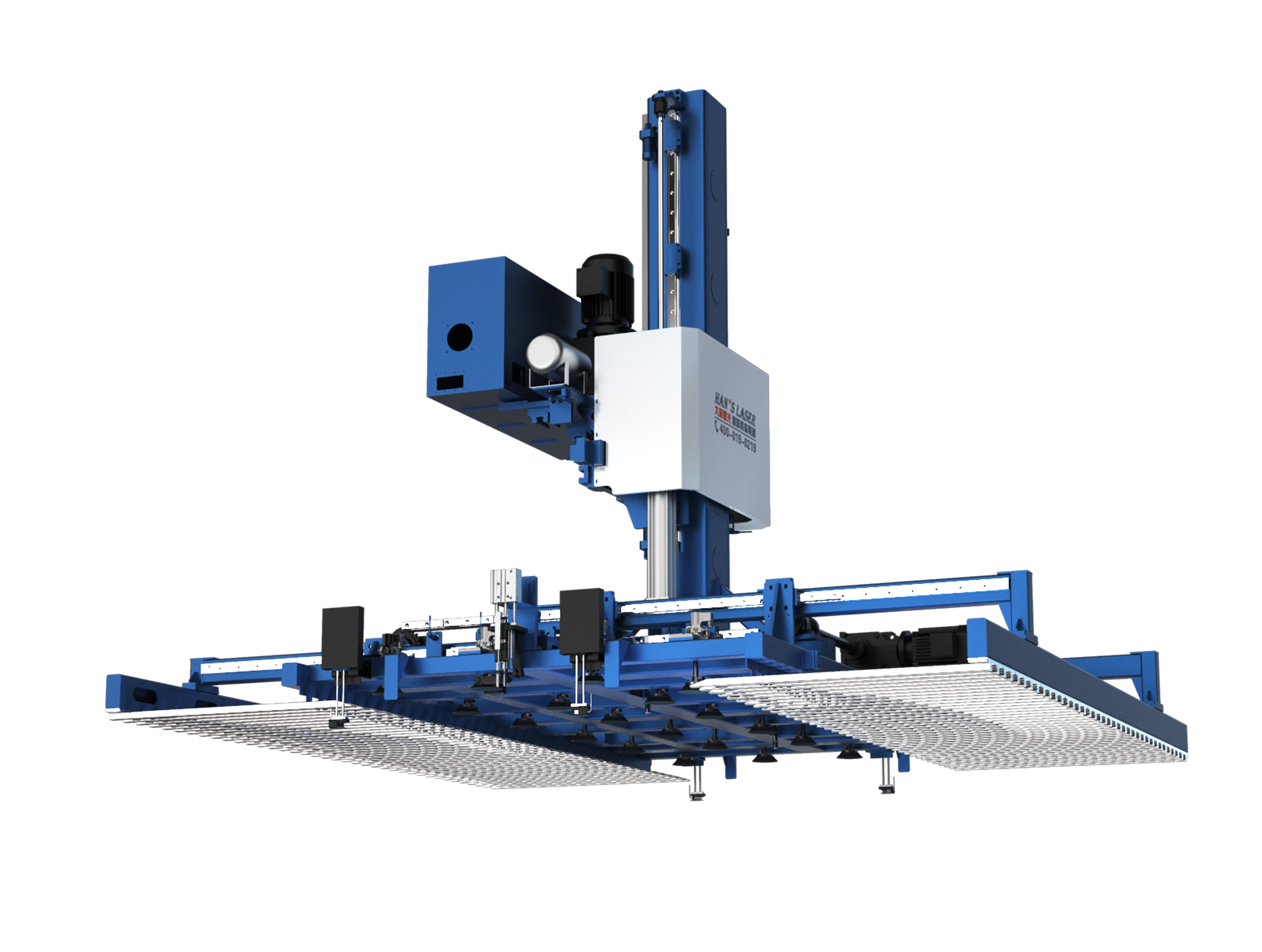 采用真空吸盤吸取原材料板材,安全性高、吸盤分區(qū)靈活。