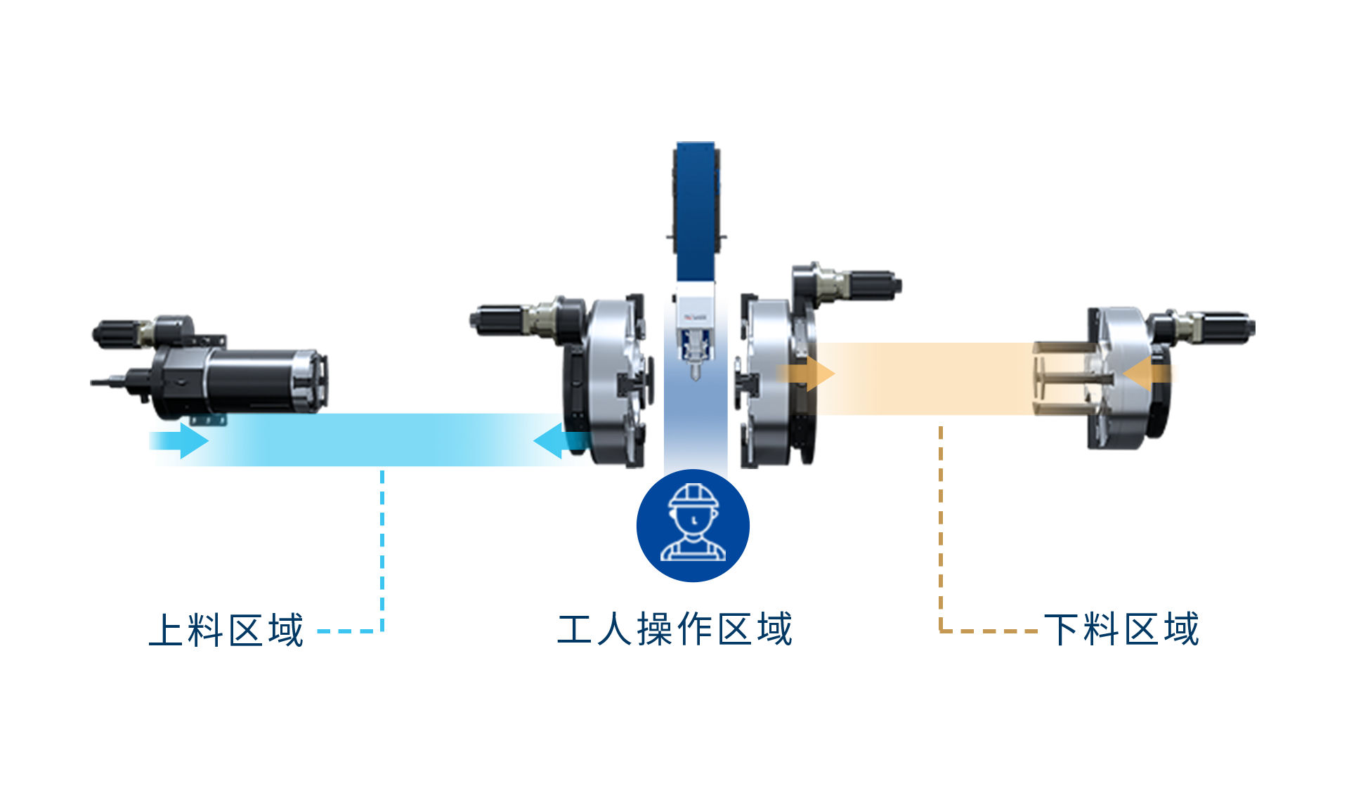 兩卡盤(pán)夾持下料,可在行程范圍內(nèi)任意區(qū)域下料,