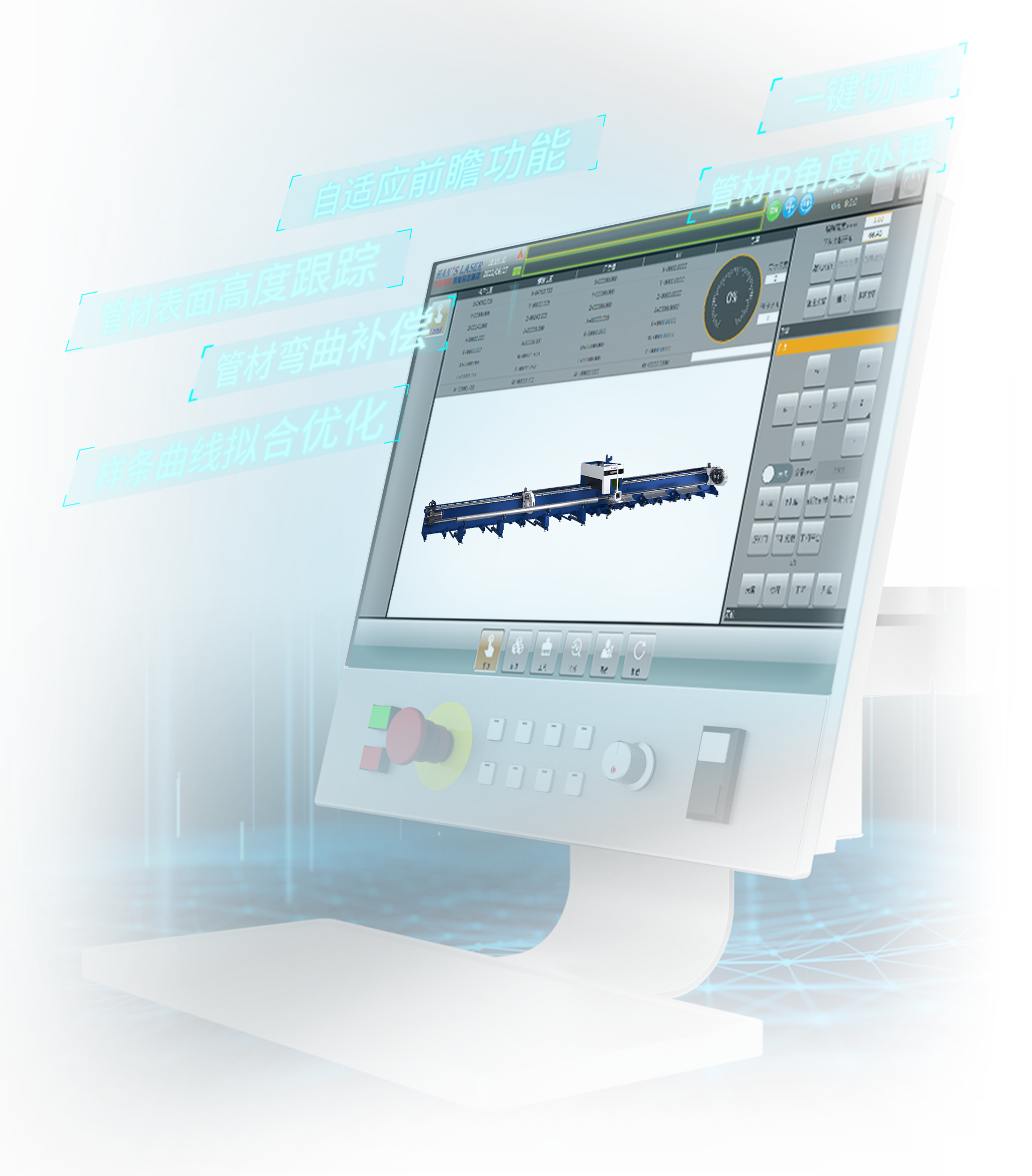根據管材長短,自動匹配下料托板數量,實時對管材進行托舉,有效提高工件切割精度。