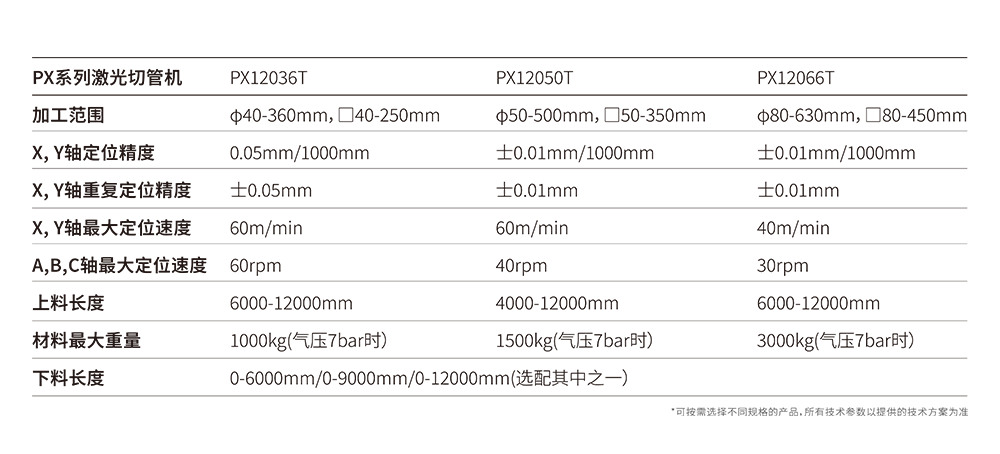 PX系列三卡盤重載型激光切管機