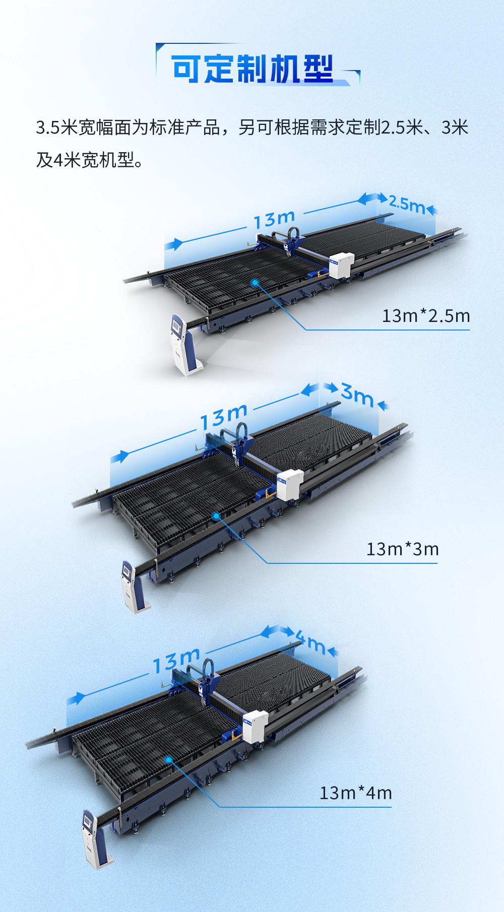 大幅面鋼結(jié)構(gòu)專用光纖激光切割機(jī),一體化線軌底座,行程大余量設(shè)計(jì),配備自適應(yīng)橫梁高精度加工,模塊化設(shè)計(jì),超快交付。